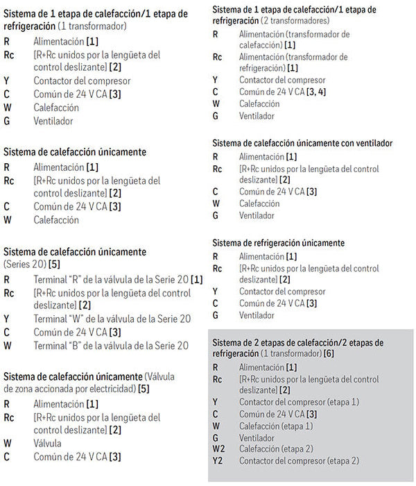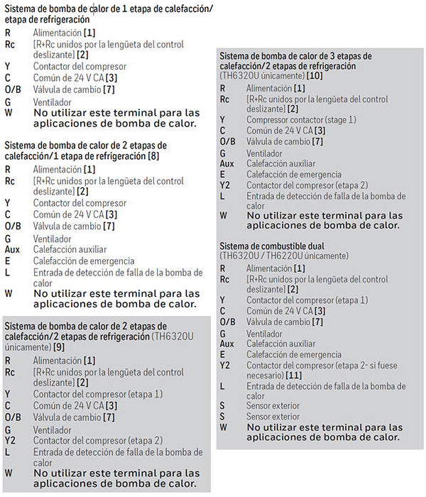 - Para los sistemas con bomba de calor, verifique que no haya un cable adherido a W en los sistemas UWP. Consulte “Sistemas de cableado de bombas de calor” de la página 5.